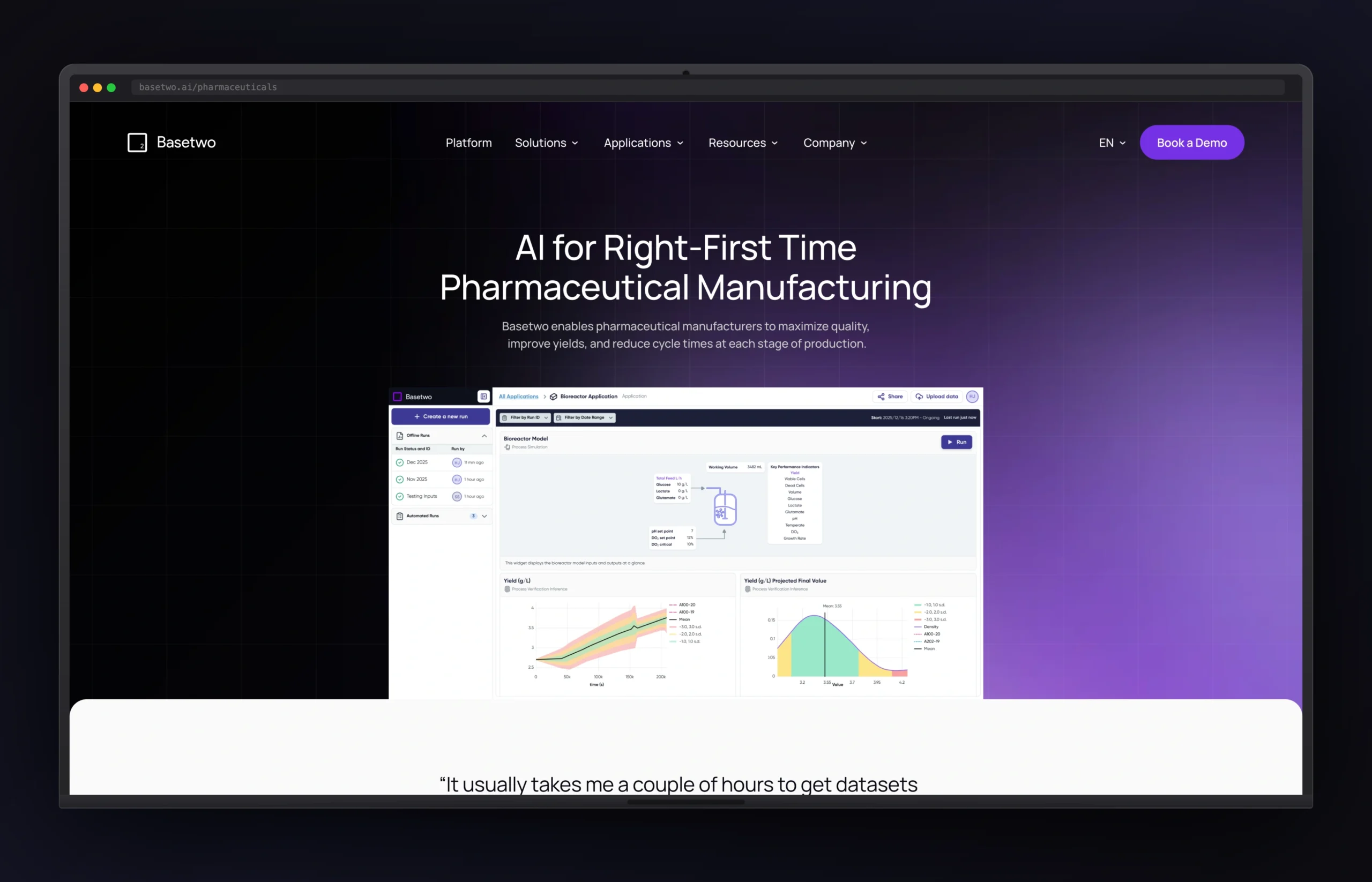 Basetwo AI is a low-code AI process automation platform that allows teams in pharmaceutical, biotech, and enterprise operations to automate complex, data-heavy workflows without engineering resources. Their target buyer is a VP of Operations or a Director of Process Excellence — technical enough to evaluate the product, but focused on outcomes, not engineering specs.