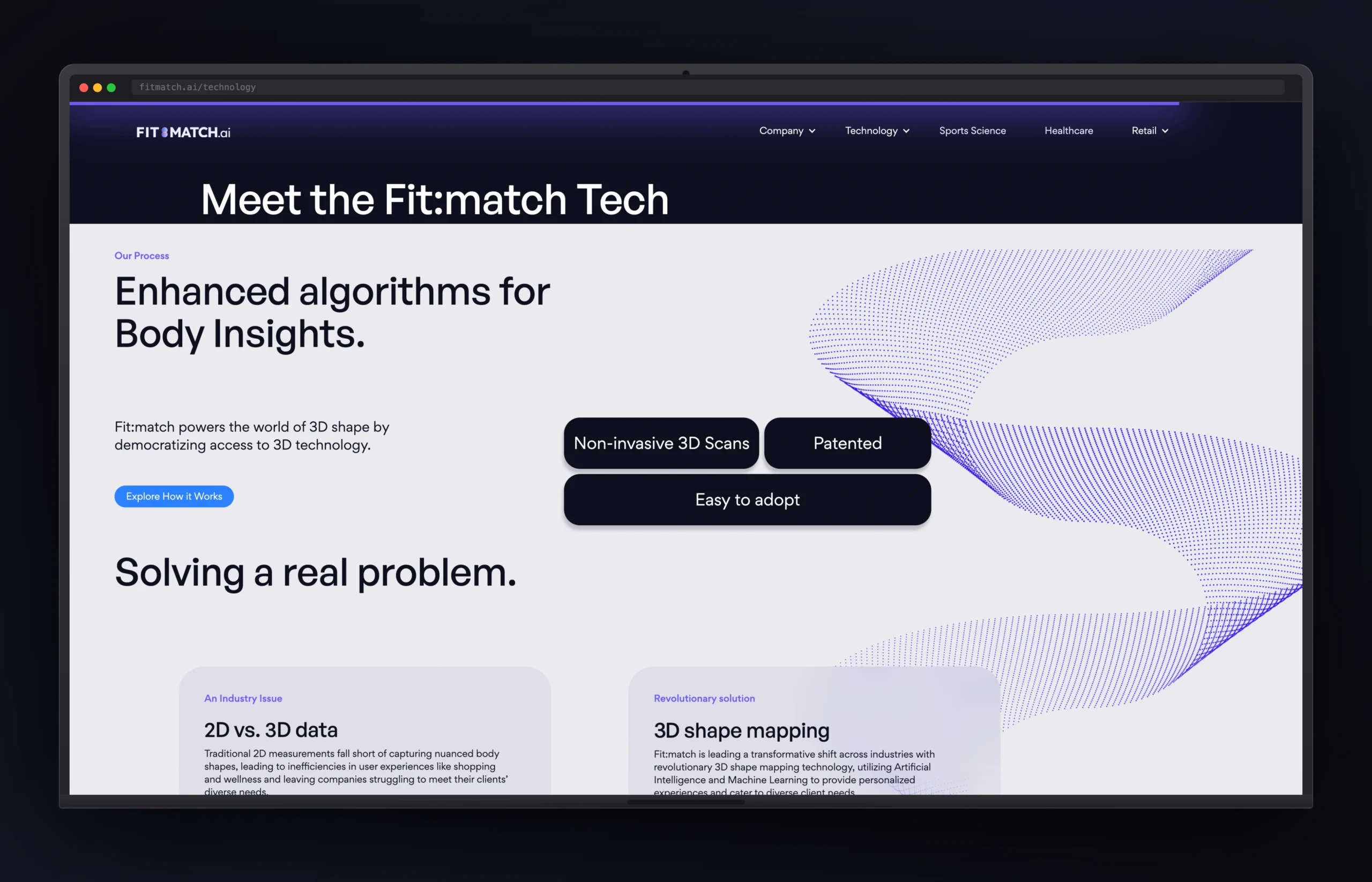 FitmatchAI is a technology platform that uses artificial intelligence to match fitness enthusiasts with the right gyms, trainers, and fitness programs based on their goals, preferences, and location. The company needed a website that communicated this tech-forward concept clearly to two distinct audiences — end users looking for fitness matches, and gym operators interested in listing their facility.