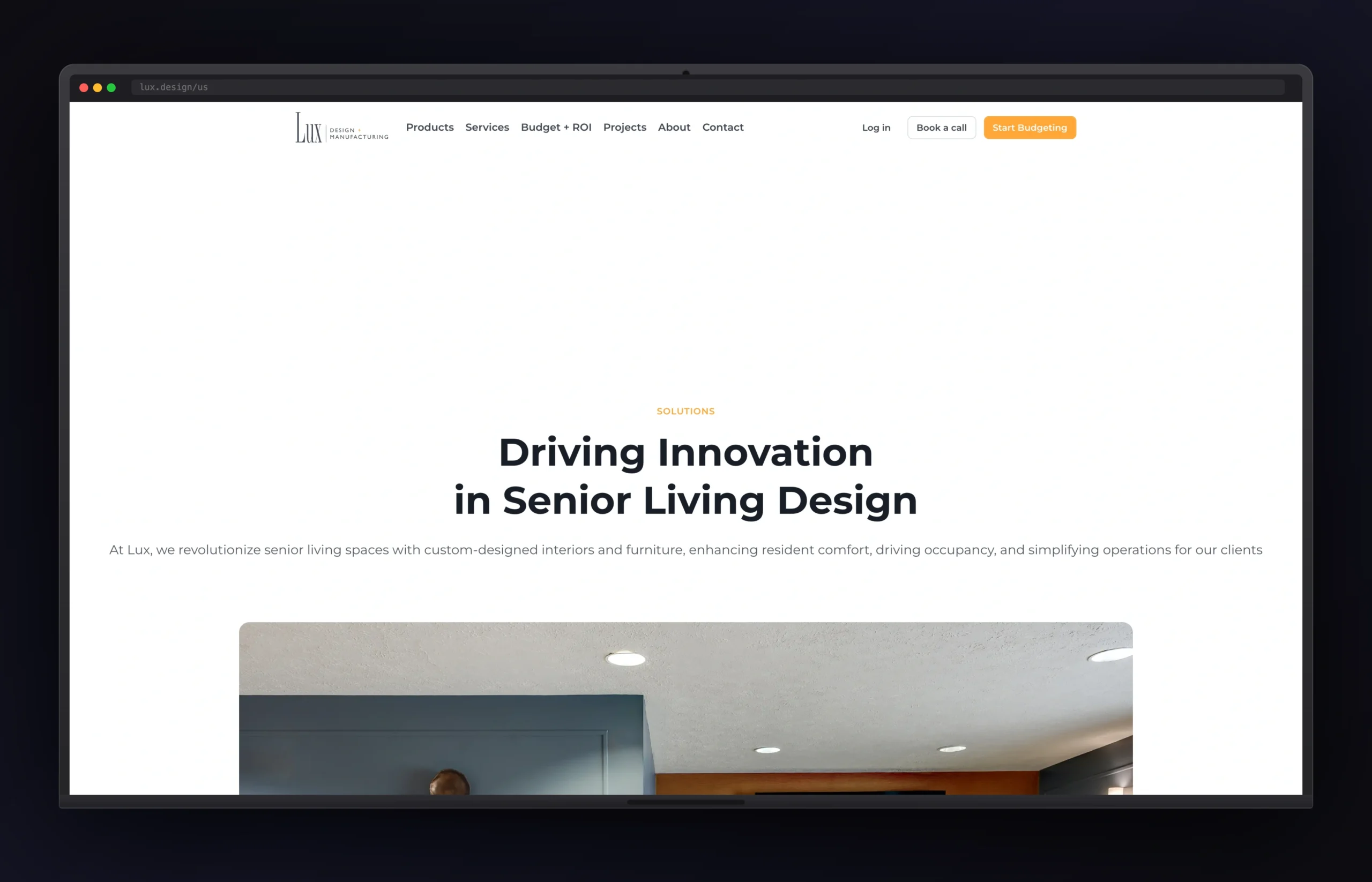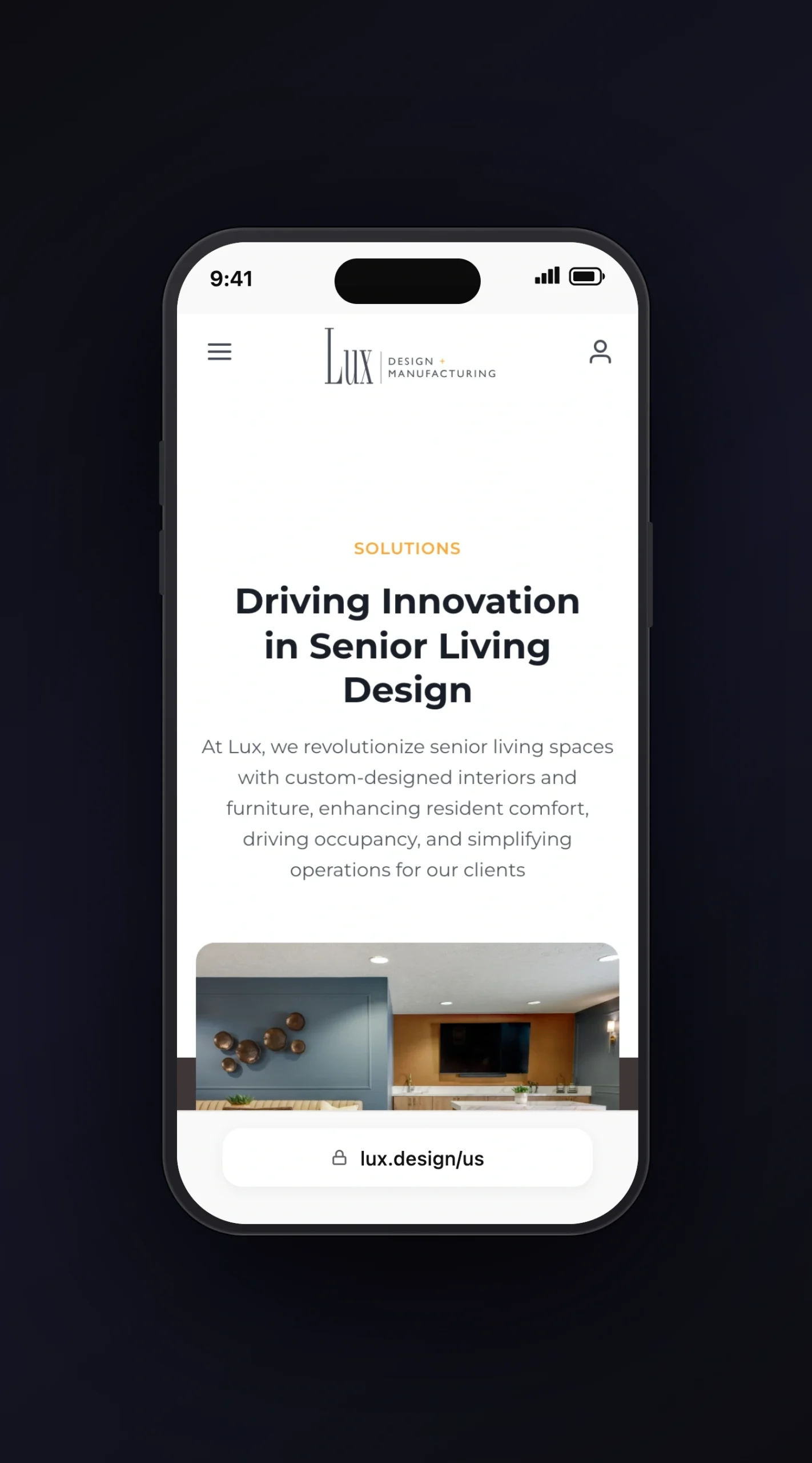 Lux Design + Manufacturing is a luxury furniture brand producing handcrafted, bespoke furniture pieces for residential and commercial clients, interior designers, and hospitality projects. Their brand sits at the intersection of art and function — and their website needed to operate as both a product catalog and an immersive brand experience.
