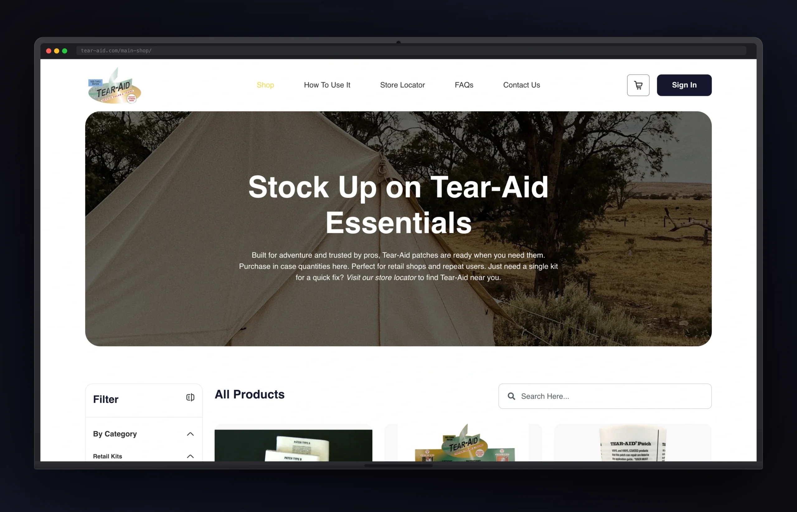 Tear-Aid is a well-established repair tape brand with decades of market presence, offering flexible, waterproof repair solutions for fabrics, inflatables, plastics, vinyl, and industrial surfaces. They needed a WordPress site that served as both a product information hub and a direct-to-consumer shopping destination, while also supporting their wholesale and distribution network.