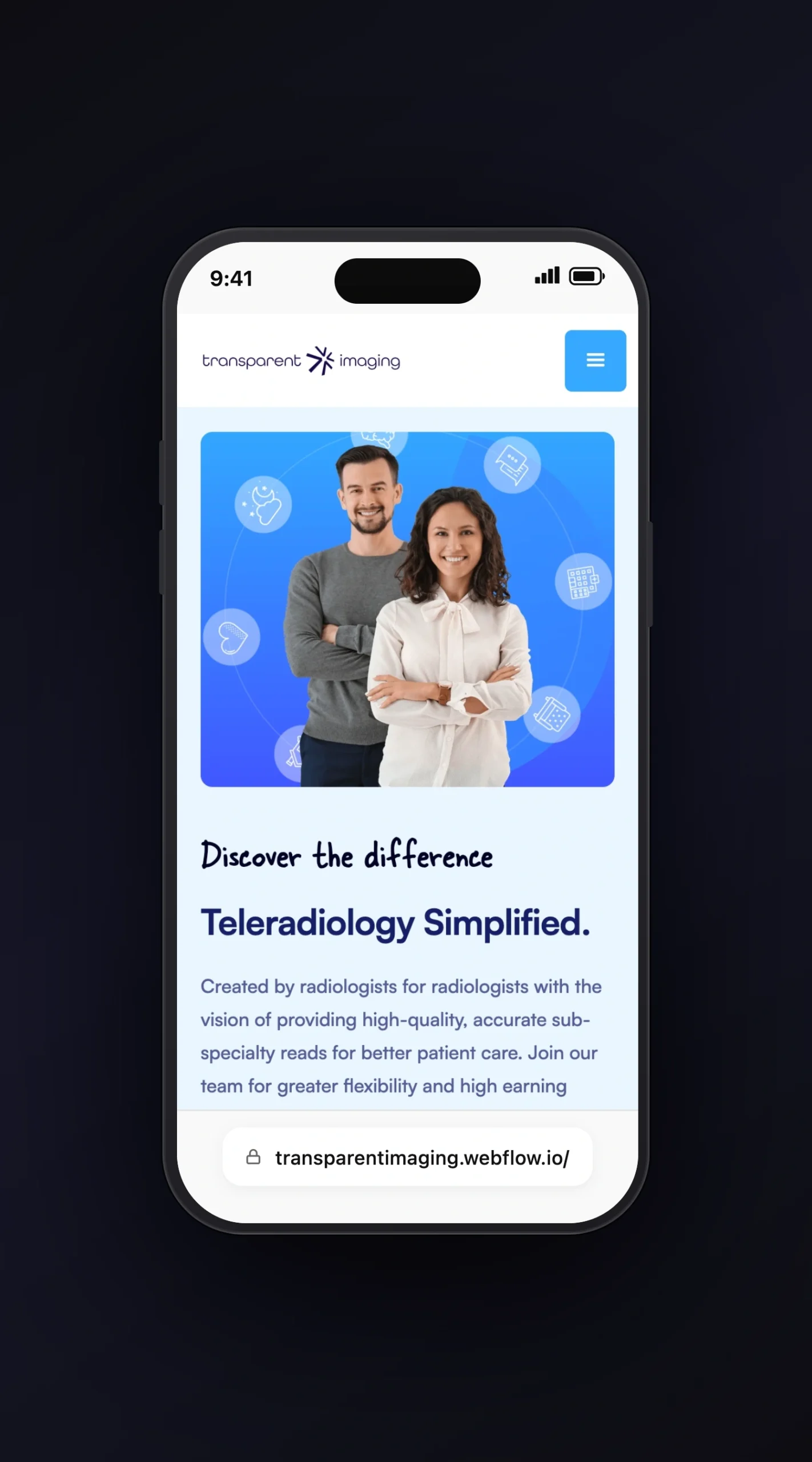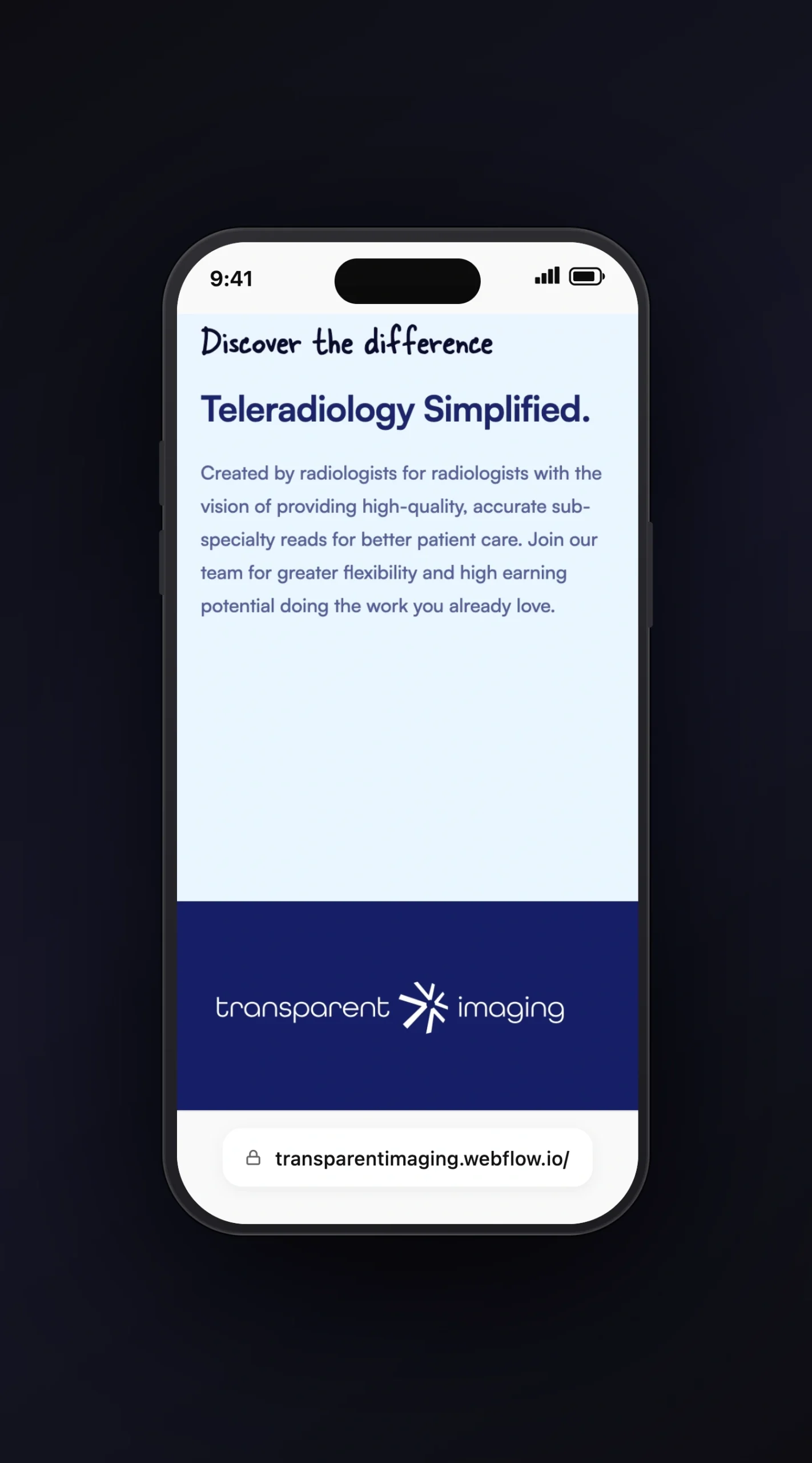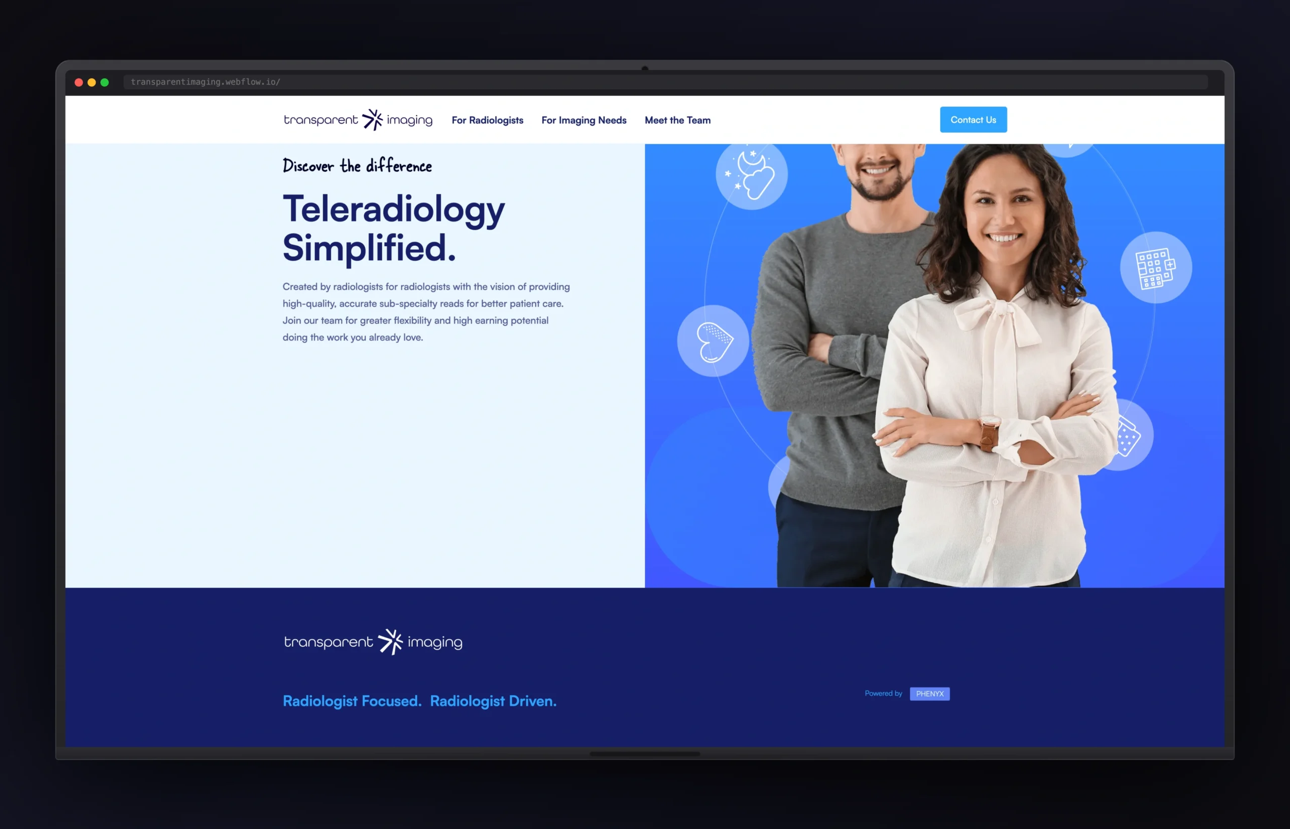 Transparent Imaging is a medical imaging and radiology services company providing diagnostic imaging — MRI, CT, X-ray, and ultrasound — to patients and referring physician networks. The website needed to serve two audiences simultaneously: patients seeking clarity about imaging services and procedures, and physician partners evaluating the company as a referral destination.